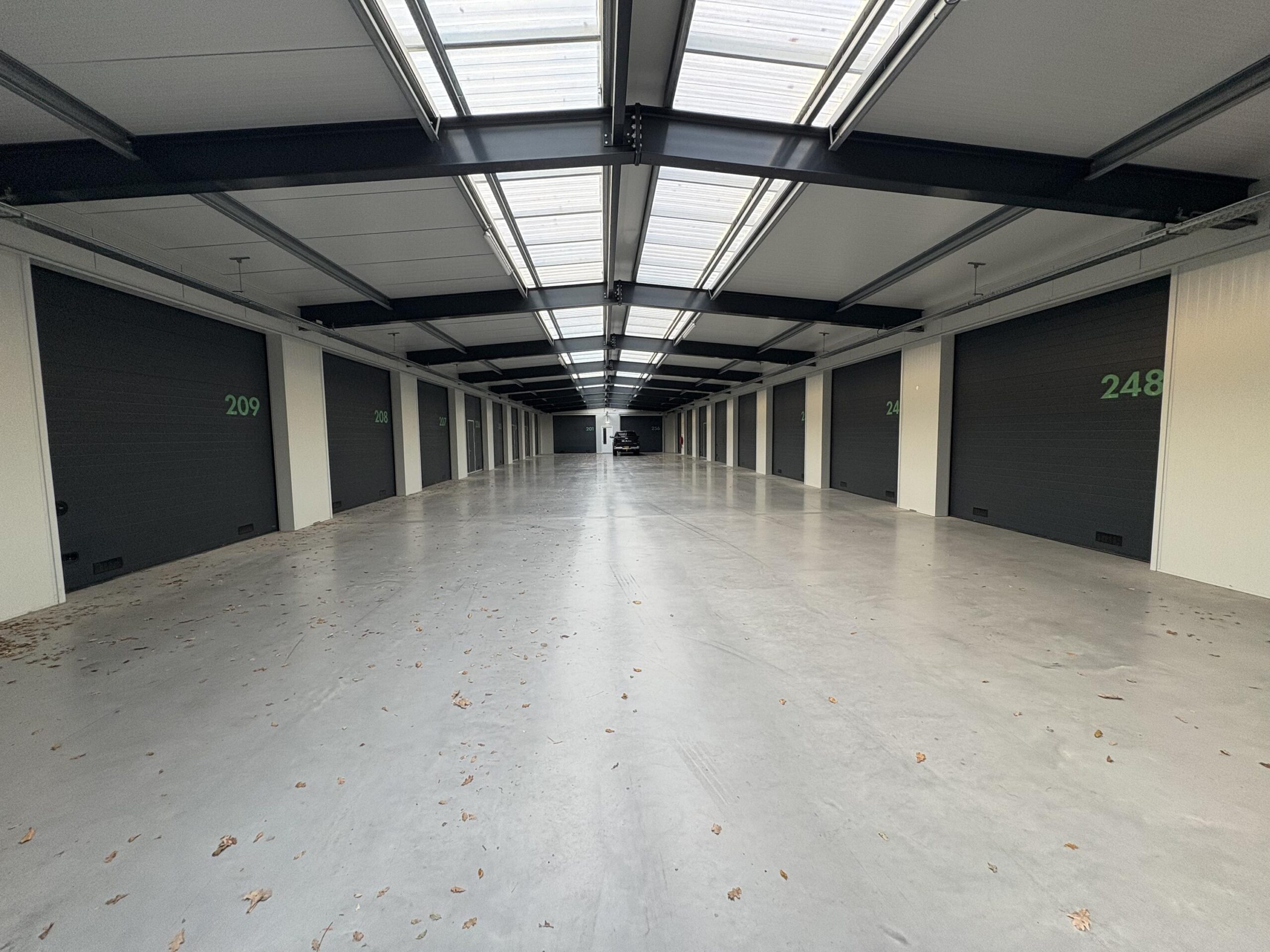 De unit is gelegen op de tweede verdieping en eenvoudig bereikbaar middels een hellingbaan. U heeft 24/7 de beschikking tot de unit met een eigen toegangstag. De afmetingen van de unit zijn 8,22 x 4,78 m (l x b). De unit heeft een vrije hoogte van 3,94 m. Dit maakt de unit uitermate geschikt als stalling voor uw auto, camper, caravan of boot.