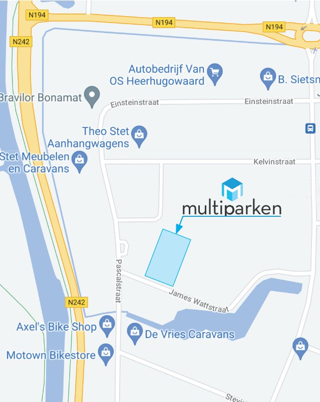 Multipark Heerhugowaard ligt op een steenworp afstand van de N242 - de doorgaande weg naar Alkmaar en de snelweg A9 - en nabij treinstation Heerhugowaard.