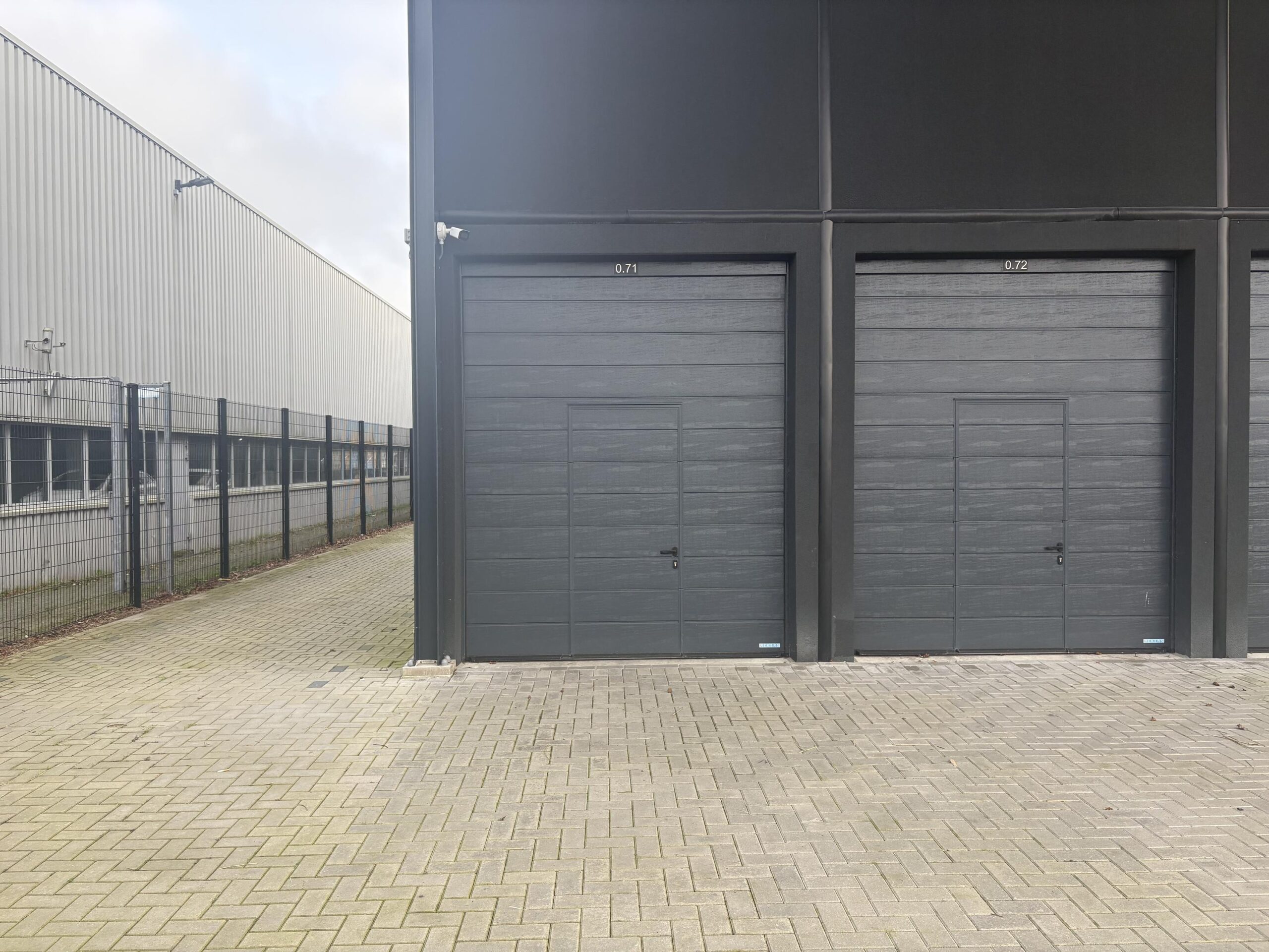 - Professionele elektrisch bedienbare sectionaaldeur met ingebouwde loopdeur;