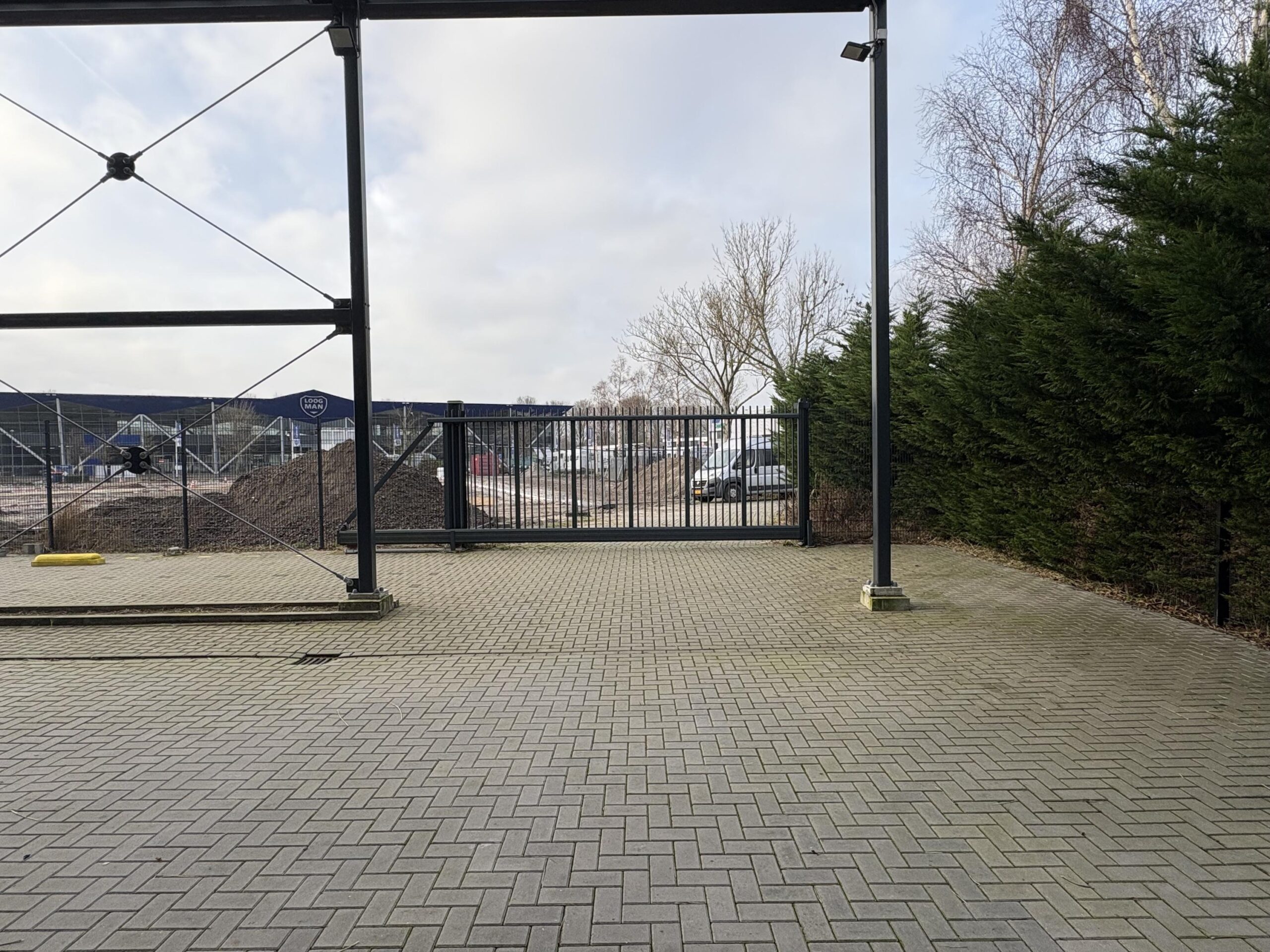 - Het park is volledig omheind met een spijlenhekwerk.